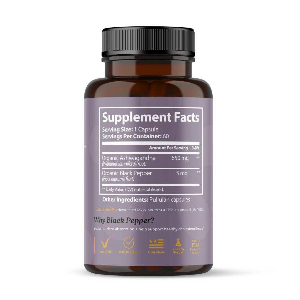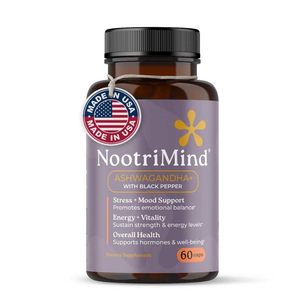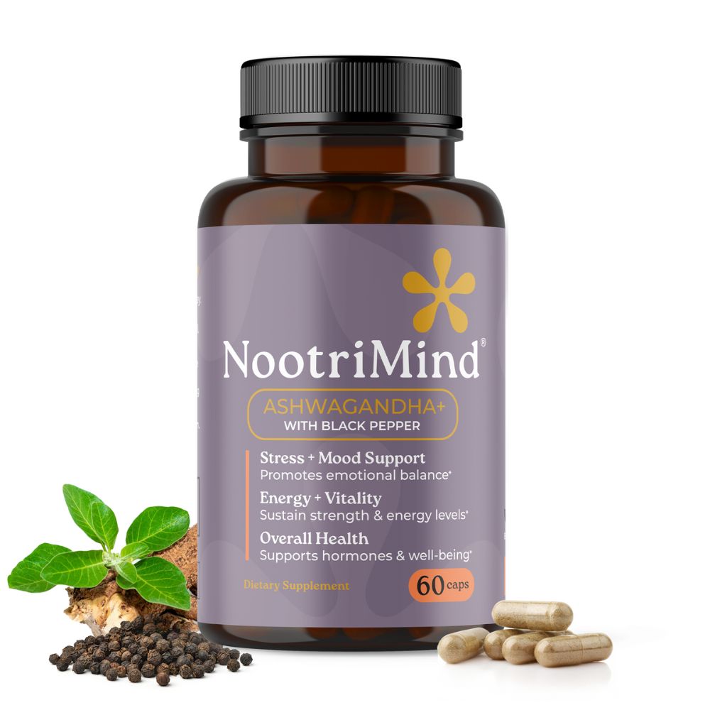 Take control of your day with NootriMind® Ashwagandha+, a targeted daily supplement designed to help you feel calm, clear, and energized—naturally. This powerful formula blends premium Ashwagandha root with bioavailable Black Pepper extract to support emotional balance, boost stamina, and promote overall vitality.