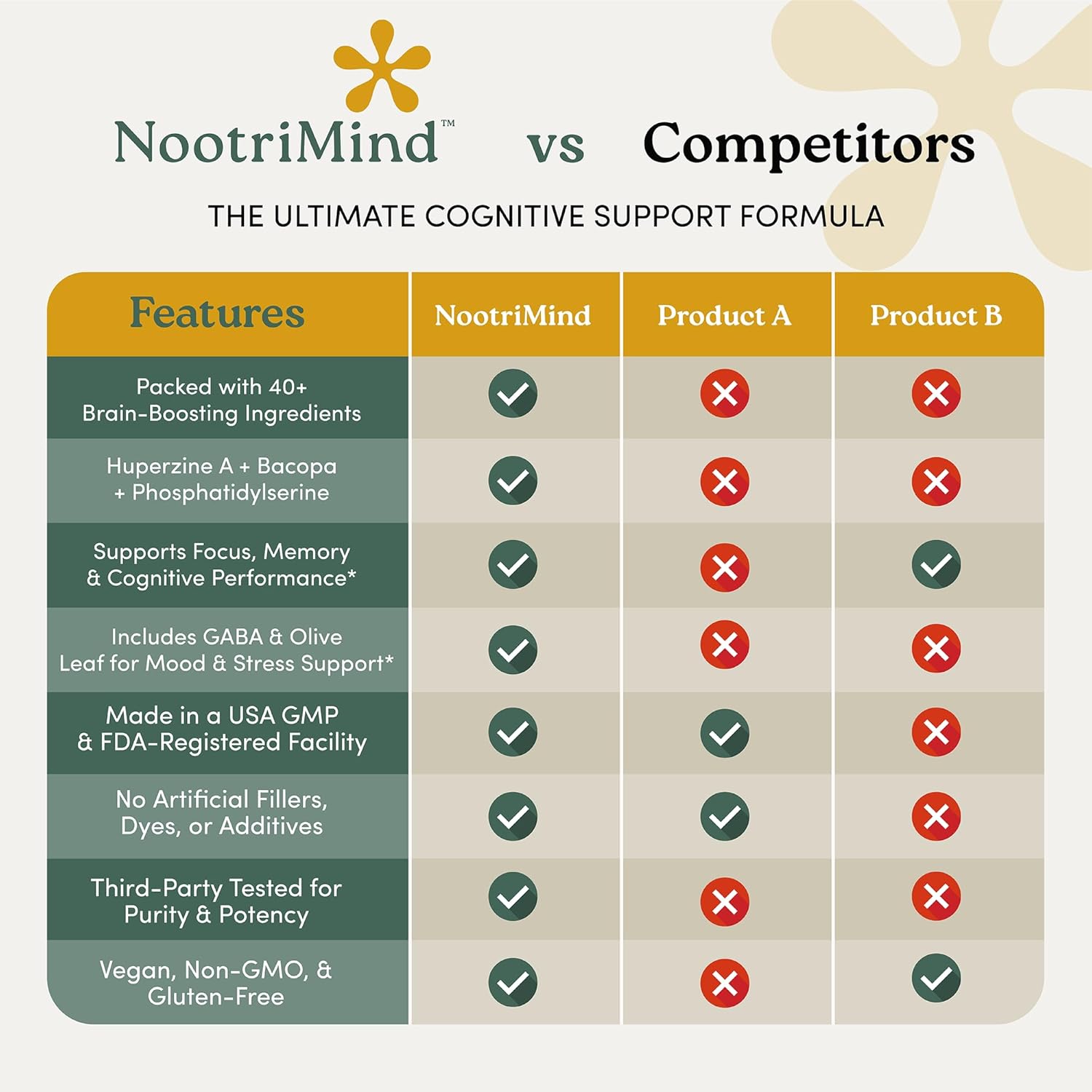 The Science: Our formula targets multiple pathways — neurotransmitter support, brain cell health, stress adaptation, and circulation. These work together, not in isolation.